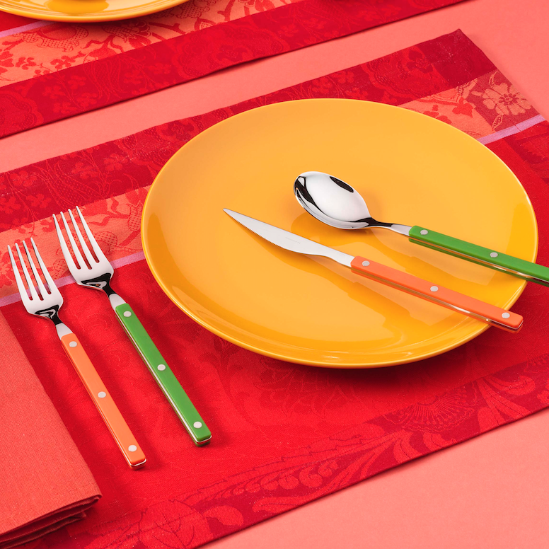 Clemente Bugatti, la créatrice de cette gamme de couverts, a trouvé son inspiration en explorant un catalogue des années 40, ainsi que certaines photographies datant de 1937. Elle a été particulièrement impressionnée par un échantillon de modèle de couverts qui se trouvait sur son bureau, conçu par son grand-père Bugatti. "J'ai reconnu dans ce prototype de coutellerie des éléments d'un design résolument contemporain, illustrant une fois de plus l'expertise de Bugatti dans la création de couverts durables depuis 1923, grâce à une méthode de production traditionnelle : les couverts rivetés," a déclaré Clemente Bugatti.