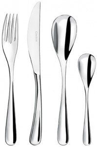Couverts Eole de la marque "Couzon". Design tout en rondeur,en Inox 18/10, finition miroir, Epaisseur 2,5 mm. Coffret 24 couverts: 6 Couteaux de Table, 6 Fourchettes de table, 6 Cuillères de Table, 6 petites cuillères.