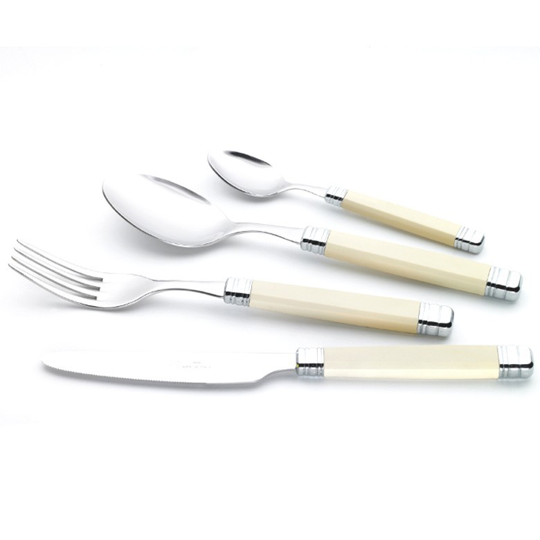 Composition du set de 24 pièces : 6 fourchettes de table, 6 couteaux de table, 6 cuillères de table et 6 cuillères à café.